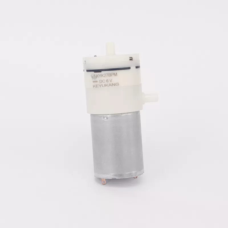 The KYK27BPM is a micro air pump designed for applications requiring lightweight construction and high efficiency. It is powered by a high-efficiency 270-series DC motor, providing stable power output, rapid response, and low energy consumption. An optimized magnetic circuit and rotor structure achieve a higher power density within a compact form factor, ensuring a reliable and continuous air supply for smart devices.
